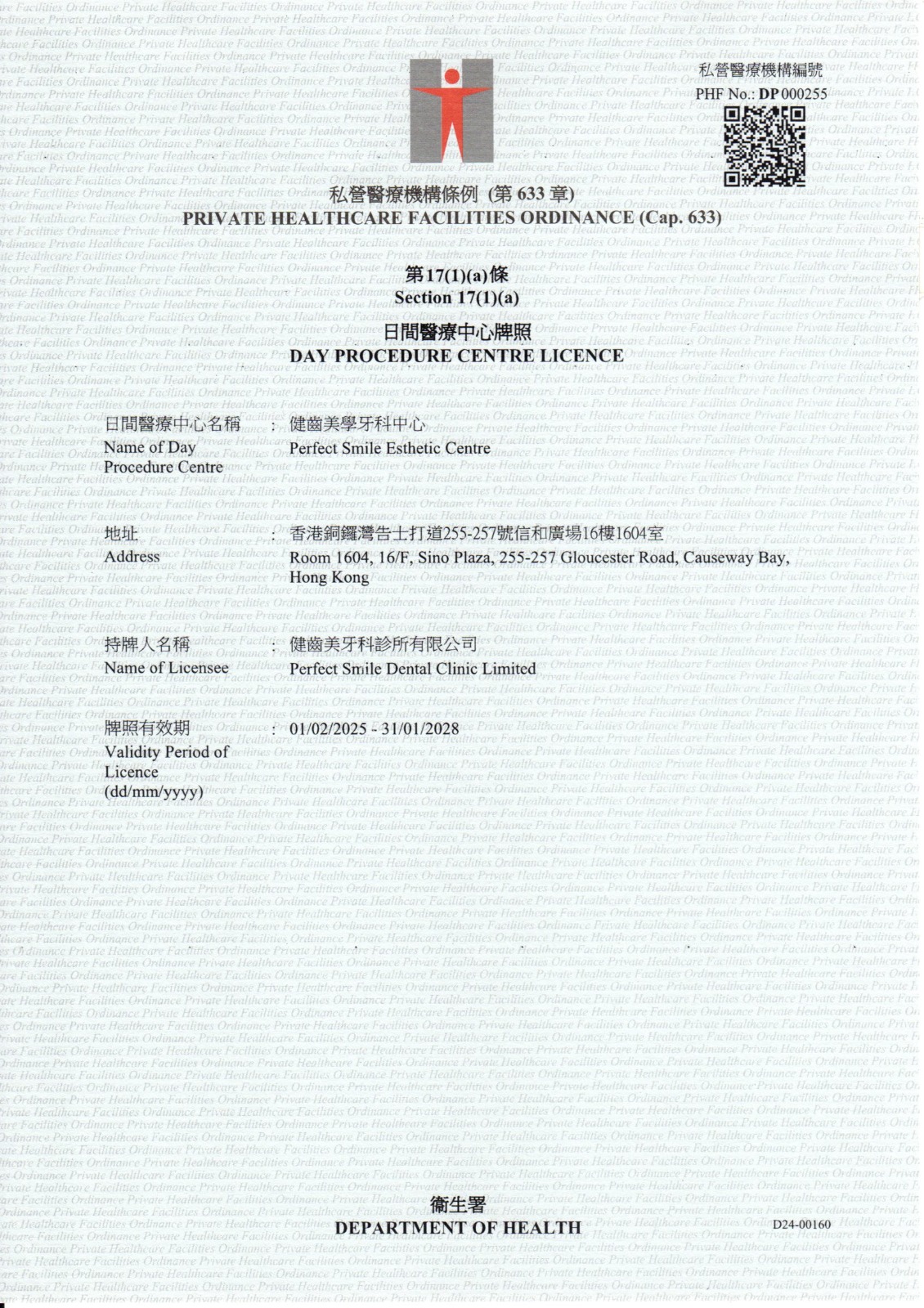 Provided the highest service, center has followed international professional guidelines since its establishment, ensure that all patients have a professional, safe and high-quality dental experience. The medical staff ensures the integrity and safety of the procedures, and the Department of Health supervises day procedure centre, our professional medical team obtained Day Procedure Centre License.